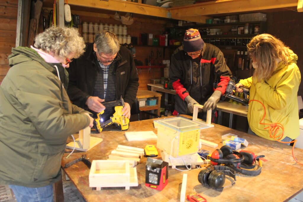 Un beau travail d’équipe avec différents postes de travail : ponçage, perçage, vissage, assemblage … Que du plaisir pour tous !