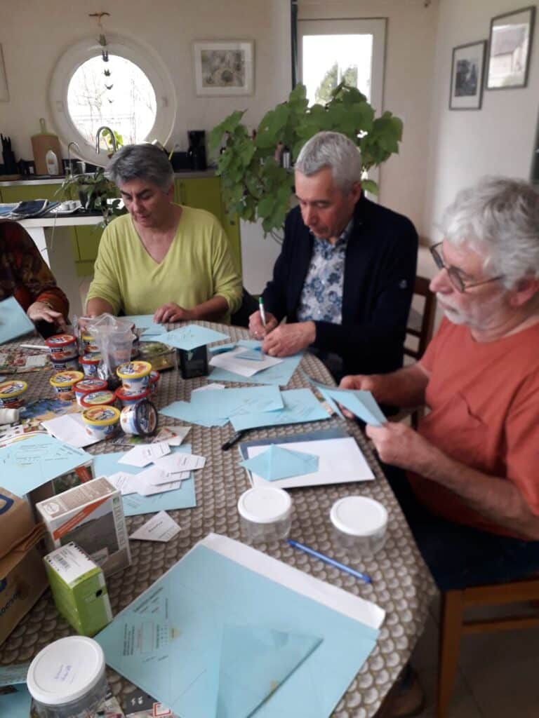 Fabrication des sachets de graines Distribution de graines de cosmos, tournesol, zinnias, agastaches, asters… pour préparer des petits plants à troquer début mai. Paul a con…