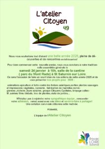 Pour bien commencer cette nouvelle année, nous vous convions à notre traditionnelle assemblée générale, salle de la cantine (parc du Mont Rude) à Saint Saturnin sur Loire.