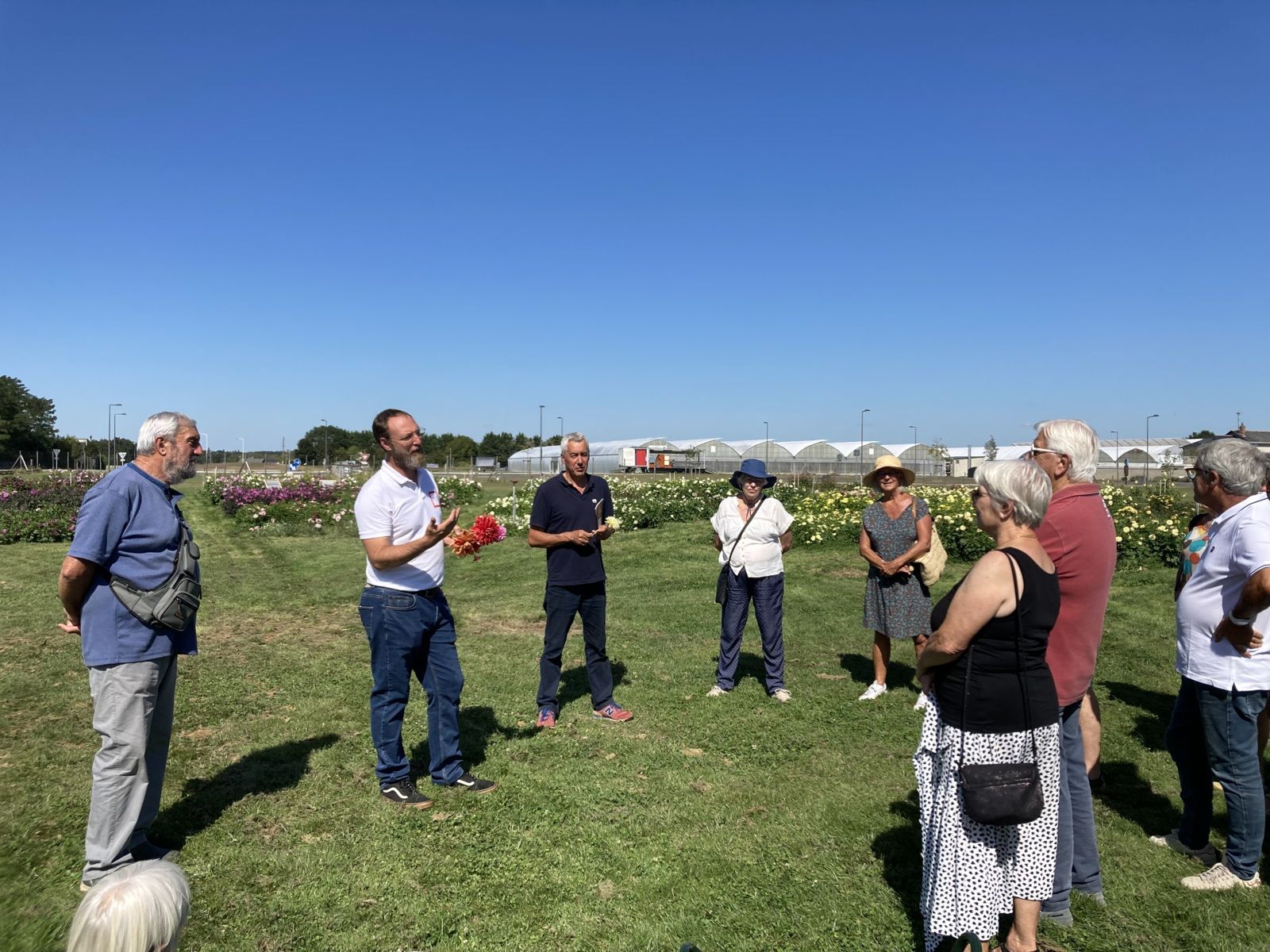 C’est sous le soleil que se sont déroulées les deux visites passionnantes du 15 septembre. Une quinzaine de membres de l’Atelier Citoyen se sont tout d’abord retrouvés avec Olivier Moreau en début d’après-midi à l’entreprise Ernest Turc à Brain sur l’Authion. Olivier nous propose cette petite synthèse des visites : Ernest TURC La famille Turc s’est installée en Anjou il y à plus de 110 ans en se spécialisant dans les cultures de Bulbes à fleurs. Cette entreprise familiale aujourd’hui dirigée par Matthieu Velé (arrière petit fils d’Ernest Turc) a beaucoup contribué à la sélection et création variétale en Dahlias ( plus de 200 variétés crées en Anjou), Cannas, Alstromerias et Agapanthes. Charles Adenot ( Directeur Général ) nous a parlé plus spécialement des cultures de Dahlia et des techniques d’hybridations naturelles tout en arpentant le carré de présentation des 260 variétés de Dahlias actuellement au catalogue professionnel. Matthieu Velé nous a fait parcourir les salles de triage, conservation , ensachage et d’expédition des bulbes. Ces salles sont ventilées pour une meilleure conservation des bulbes. Nous avons pu découvrir les machines servant au conditionnement des bulbes actuellement expédiés en jardineries et aux collectivités. Il s’agit à cette saison des bulbes à floraison printanière : Jacinthes , narcisses, Muscaris ( cultivés en Bretagne sur une autre exploitation appartenant à l’entreprise), Tulipes et Glaïeuls. Les produits, bulbes et semences (Ernest Turc possède aussi une unité d’ensachage de semences !) se trouvent en jardineries sous les marques Ernest Turc, Ernest au jardin , Silence, ça Pousse ! par exemple. Ils sont aussi accessibles sur le site web de l’entreprise. https://www.ernest-turc.com Le magasin de la ferme de sainte Marthe FERME DE SAINTE MARTHE Dominique Velé, nous a accueilli sur le terrain des Landes à Brain sur L’Authion ( l’un des deux terrains de l’exploitation de production de semences Bio qu’il dirige avec Arnaud Darsonval). https://www.fermedesaintemarthe.com Dominique Vellé Après un passage sur une partie des cultures en serres tunnels insectes proof où nous avons parlé de pollinisation, de variétés population, d’inscriptions au catalogue officiel, de la certification Bio, du paillage des sols… nous avons découvert les méthodes de récolte des graines, les moyens de séchage, les différentes machines de tri et calibrage. Cela va du tamis à la machine de tri électronique en passant par les machines à densimétrie. Les semences sont ensuite stockées en frigo à 15°C et hygrométrie à 40% seulement, puis conditionnées en sachets grâce à des compteuses à capteurs électroniques. Les discussions ont continué autour d’un verre dans la salle de réunion au premier étage du point de vente détail. Nous avons abordé divers sujets sensibles dont les ressources en eau et l’arrosage. Merci à Olivier d’avoir organisé ce temps de découverte privilégiée de 2 entreprises phares de notre région en matière d’horticulture et de semences. L’Atelier citoyen, c’est aussi une page Facebook : l’Atelier citoyen 49 Pensez à partager la page dans vos réseaux Si vous voulez recevoir les informations, les invitations ou adhérer à l’Atelier citoyen, laissez-nous un message à lateliercitoyen@gmail.com